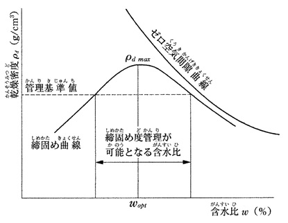 れる。これは締固め曲線と呼ばれ,ある一定のエネルギーにおいて最も効率よく土を